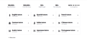 2. توفر المنصة إمكانية تحديد أهداف تعليمية واضحة سواء المستوي الخاص بتعلم اللغة لأغراض العمل داخل أو خارج الدول. كما تساعد علي اجتياز اختبارات دولية بدرجات نهائية بكل سهوله وتساعدك في التمكن من تحسين مهارات المحادثة. حيث ان كل ذلك يعتبر توجه حديث نحو التعليم القائم على النتائج. ورغم شهره Preply في اللغات لكنها أيضا توفر دروس في مواد مدرسية ومجموعة من المهارات المهنية المطلوبة لزيادة القدره على تلبية احتياجات سوق التعليم الرقمي بطريقة مرنة.